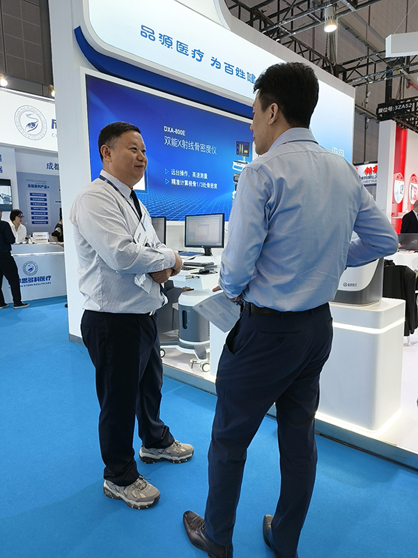 雙能X射線骨密度儀作為品源醫療的拳頭產品,憑借其高精度測量和低輻射劑量等特點,成為展會期間骨科、內分泌科等專業觀眾咨詢的重點。該產品采用國際公認的"金標準"——雙能X射線吸收法技術,能夠為醫生提供詳細的骨骼健康評估數據,對于骨質疏松的早期預防和治療具有重要價值。